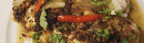 Bangladeshi steamed fish with mustard seed, turmeric and chilli